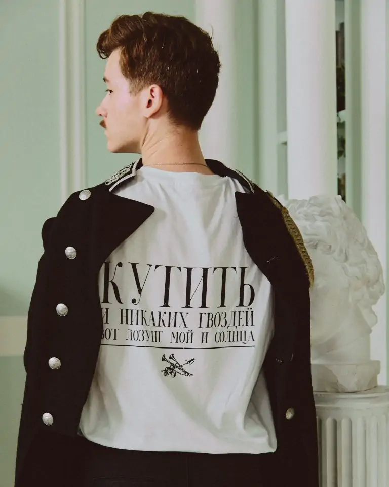 Творческое объединение Piterville славится тем, что сочиняет и снимает юмористические видеоролики на тему русской литературы и культуры в целом. Главными героями скетчей часто становятся гусары. Мы объединились с гусарами и подготовили для вас целую коллекцию кутёжных футболок, которые станут отличным подарком для настоящих кутежологов! Изделия доступны для заказа в нашем интернет-каталоге или через онлайн-консультантов в Telegram.