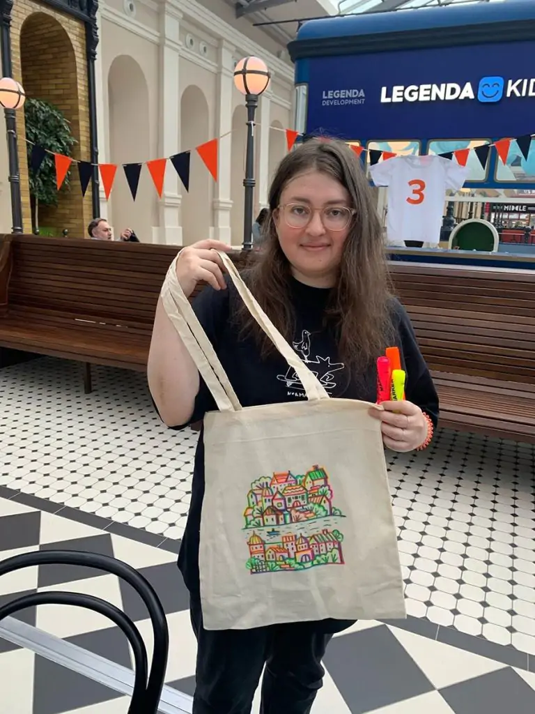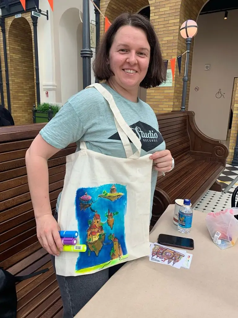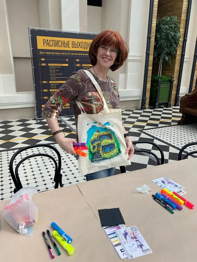 12:30-14:00 – «Мультяшные домики» текстильными маркерами на белом шоппере. Преподаватель — Ольга Алимова