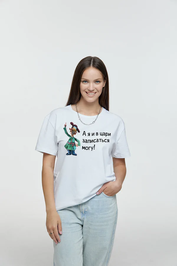 Футболки базовые с принтом «А я и в цари записаться могу» по мотивам мультфильма «И падал прошлогодний снег»