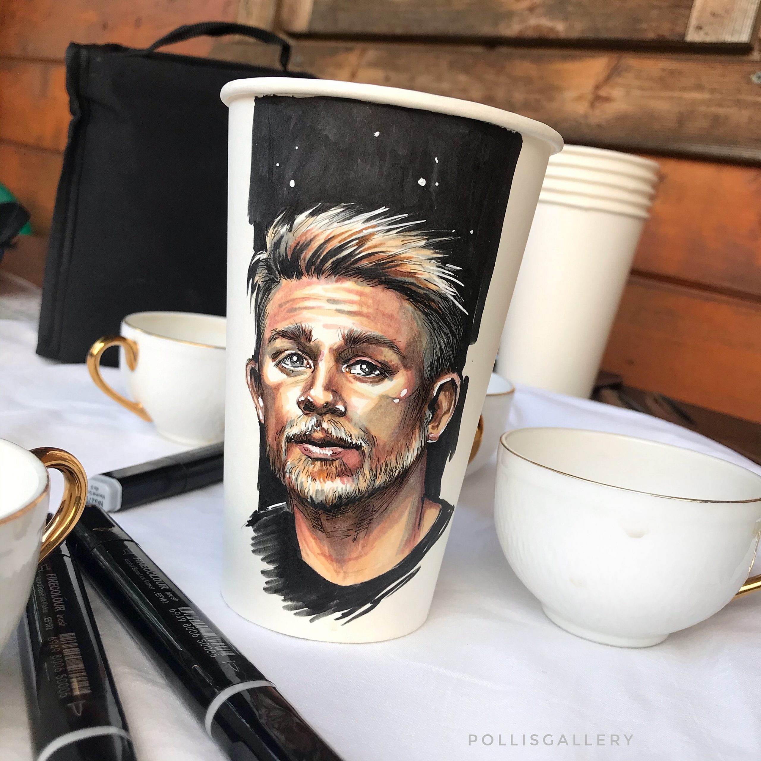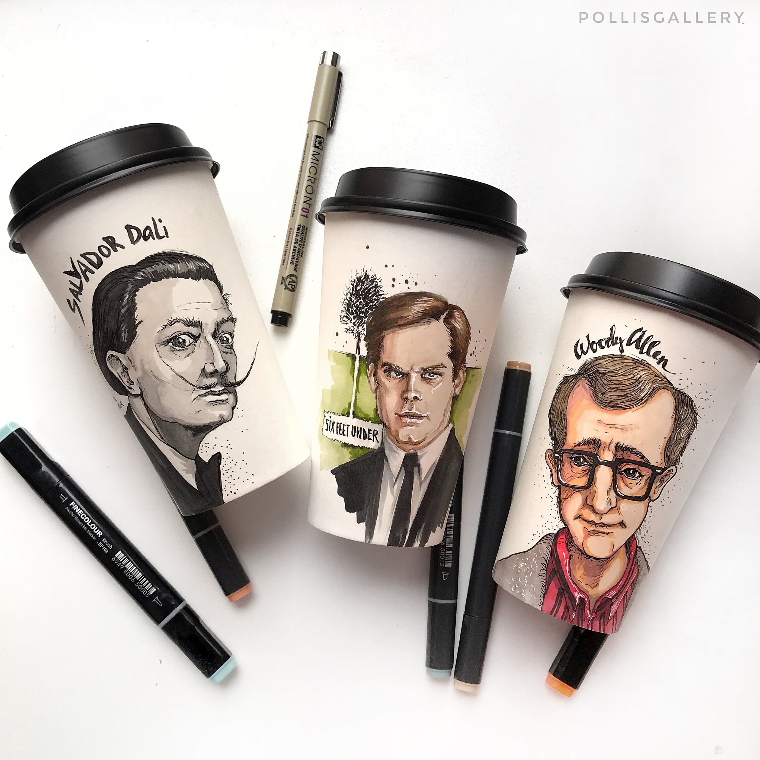 Все свои проекты я показываю подписчикам в своем профиле. Они точно знают, в каких кафе они могут выпить кофе из стаканчика с моим артом, а где купить футбик с моим принтом. Также приглашаю всех участвовать в моих марафонах, они у меня проходят периодически. И наблюдать за моим проектом: портрет на стаканчике. Кстати, почти все мои авторские стаканчики можно выкупить.