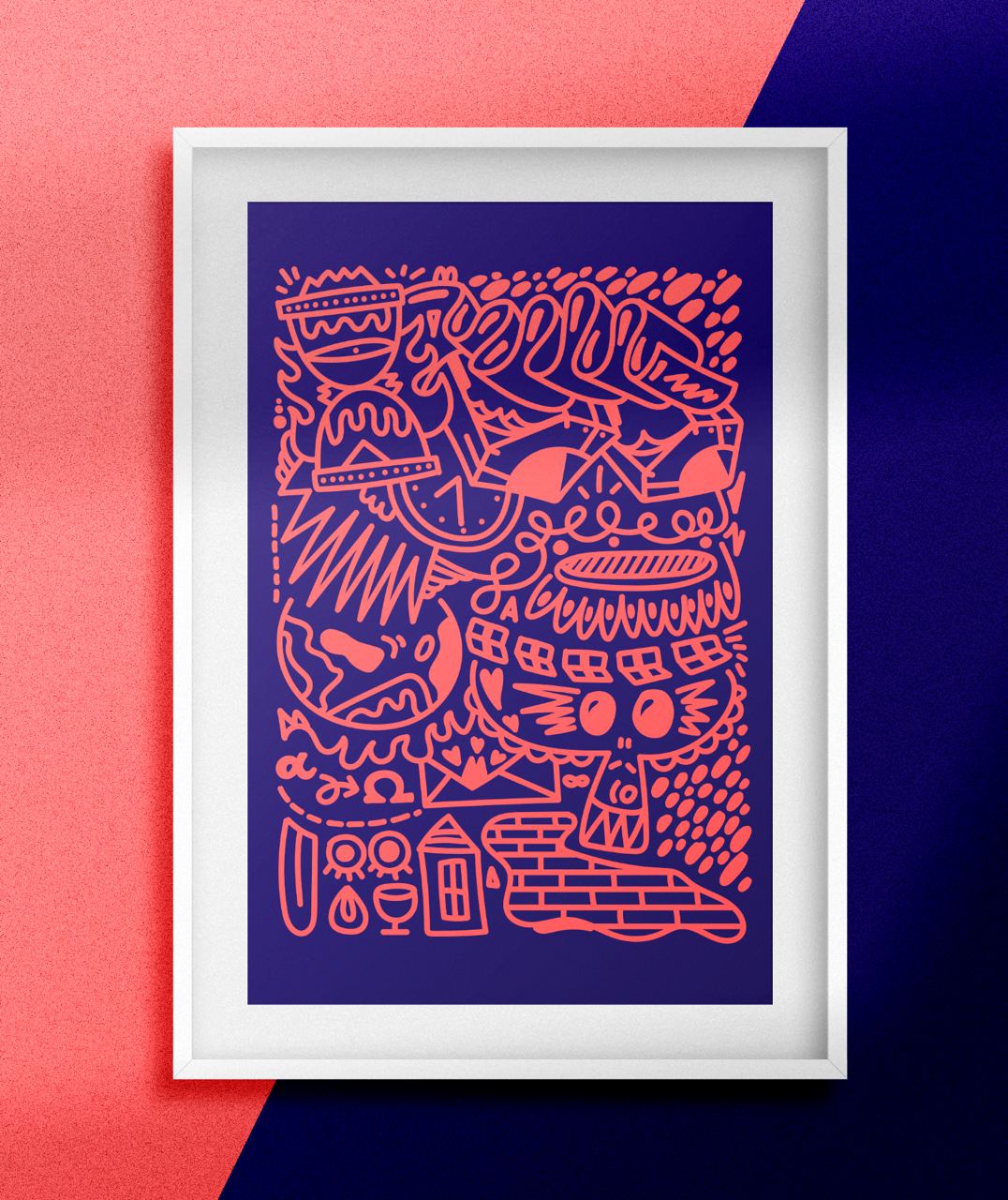 ДК: – Я рисую и занимаюсь дизайном с 2008 года, начинал с рисования граффити на улице. Принимал участие в фестивалях стрит-арта и других подобных мероприятиях, много участвовал в конкурсах, связанных с графикой и рисованием. Осознанно стал заниматься этим почти с самого начала: всегда видел в этом большую перспективу и старался больше и больше погружаться в процесс и изучать нюансы. Сейчас я работаю дизайнером – занимаюсь айдентикой, вебом и иллюстрацией, а также развиваю направление с моей фирменной графикой: художественным оформлением помещений или иллюстрацией для упаковки, полиграфии и прочей рекламы. Я не работаю в студии или агентстве, хотя при случае с удовольствием сотрудничаю с ними.