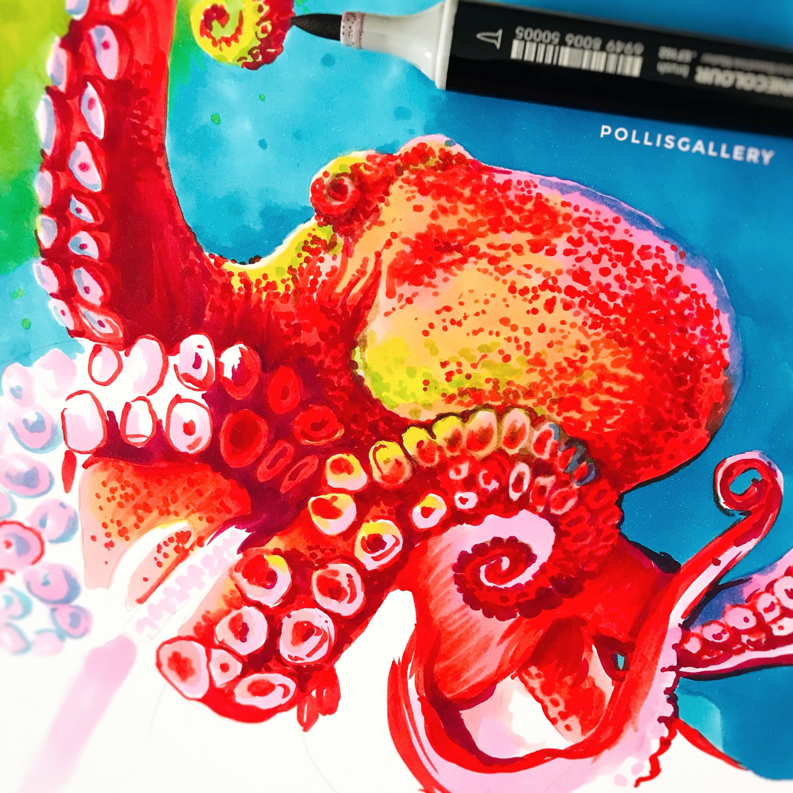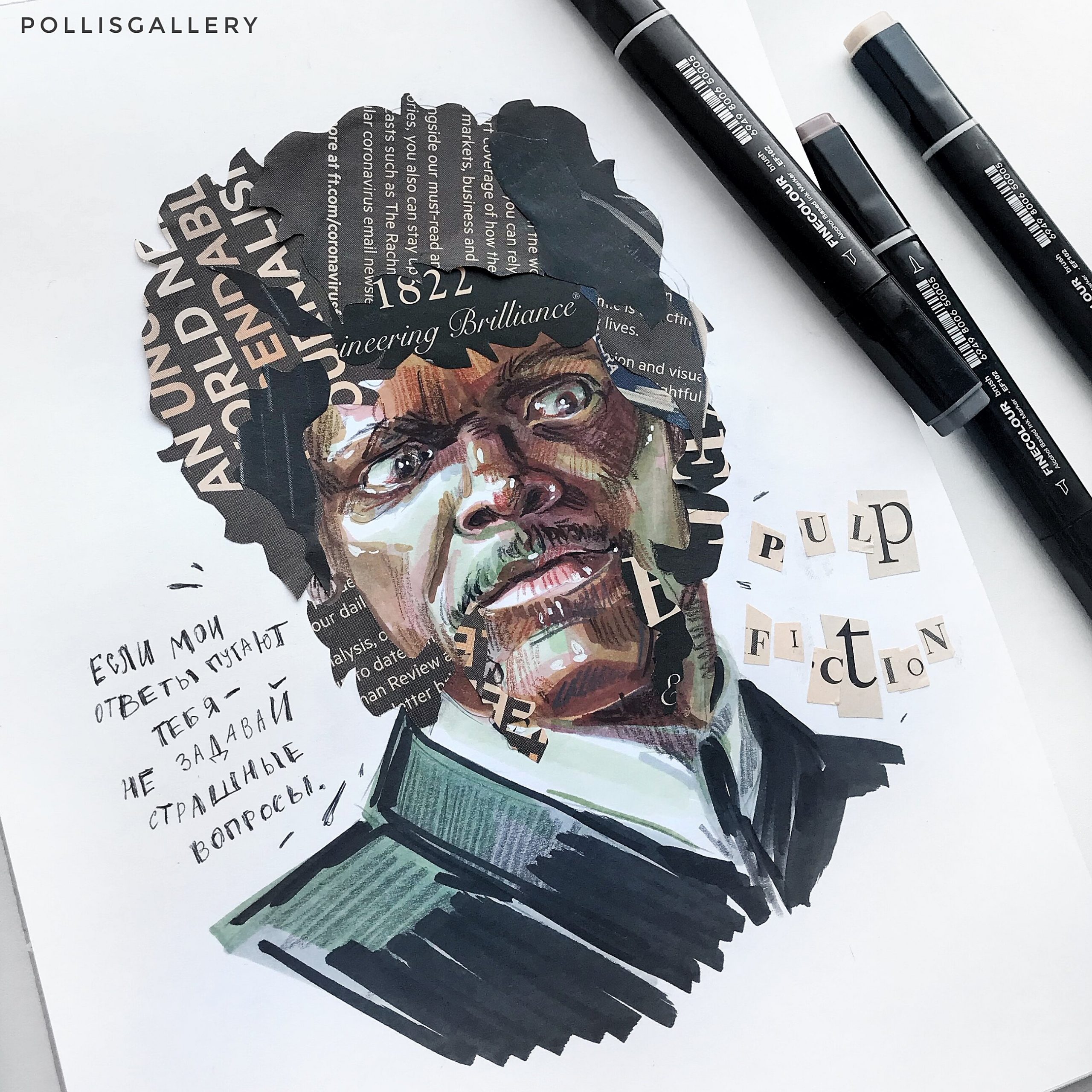 Я рисую в смешанной технике. Использую практически все известные материалы в разумных сочетаниях. Пожалуй, только масло пока не в ходу, его заменил акрил. Любимые сочетания: маркеры, цветные карандаши, линеры, коллаж. Или акварель, акварельные маркеры, браши и тушь.