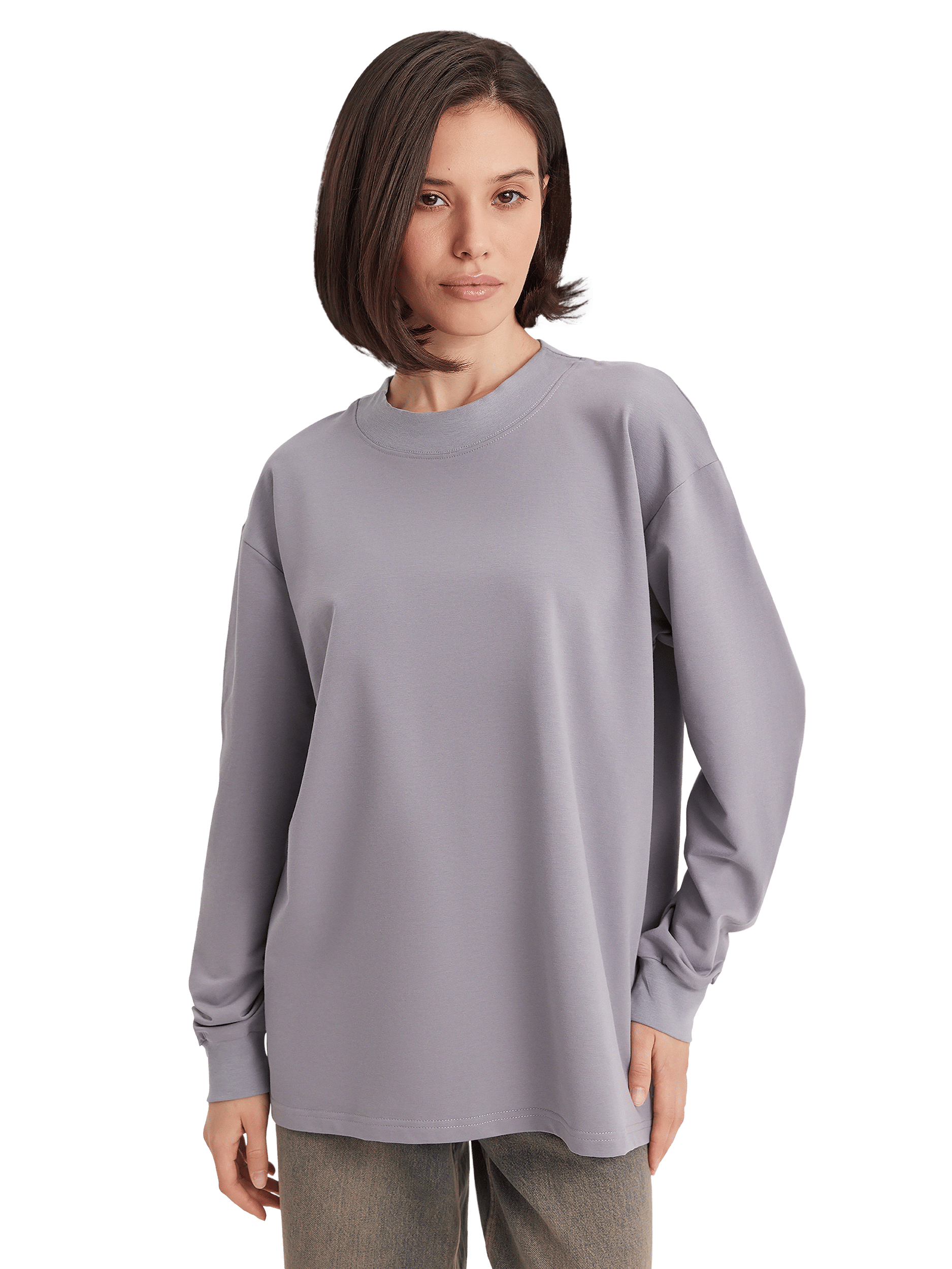 Лонгслив оверсайз из футера двунитки. Фасон унисекс. Состав: 93% хлопок, 7% лайкры. Плотность: 250 г/м2. Свободный актуальный крой, заниженная линия…