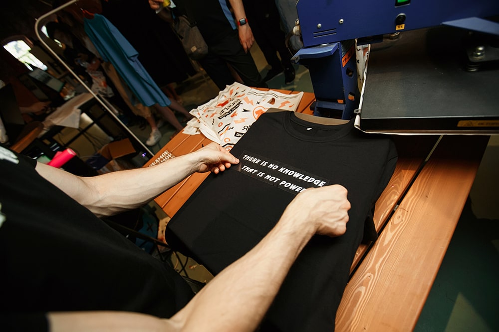 Напечатаем надпись, крылатую фразу или слоган на футболках собственного производства. Легко превратим однотонный текстиль в любимую одежду, неординарный подарок, стильный корпоративный мерч или униформу сотрудников.