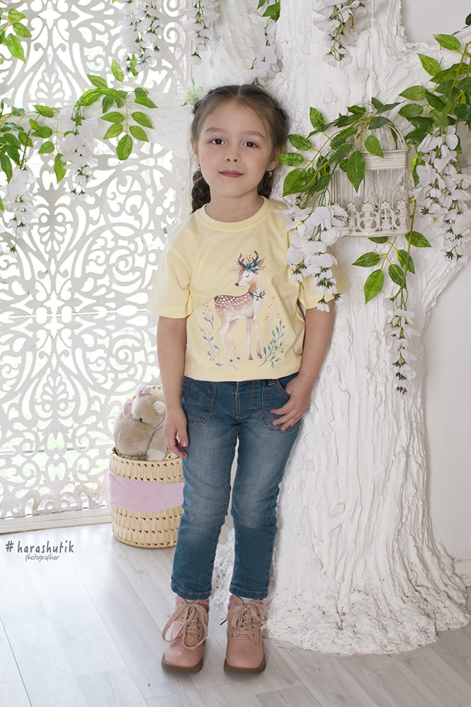 Базовая модель с удобной посадкой для девочек и мальчиков. Детский фасон со свободным силуэтом.