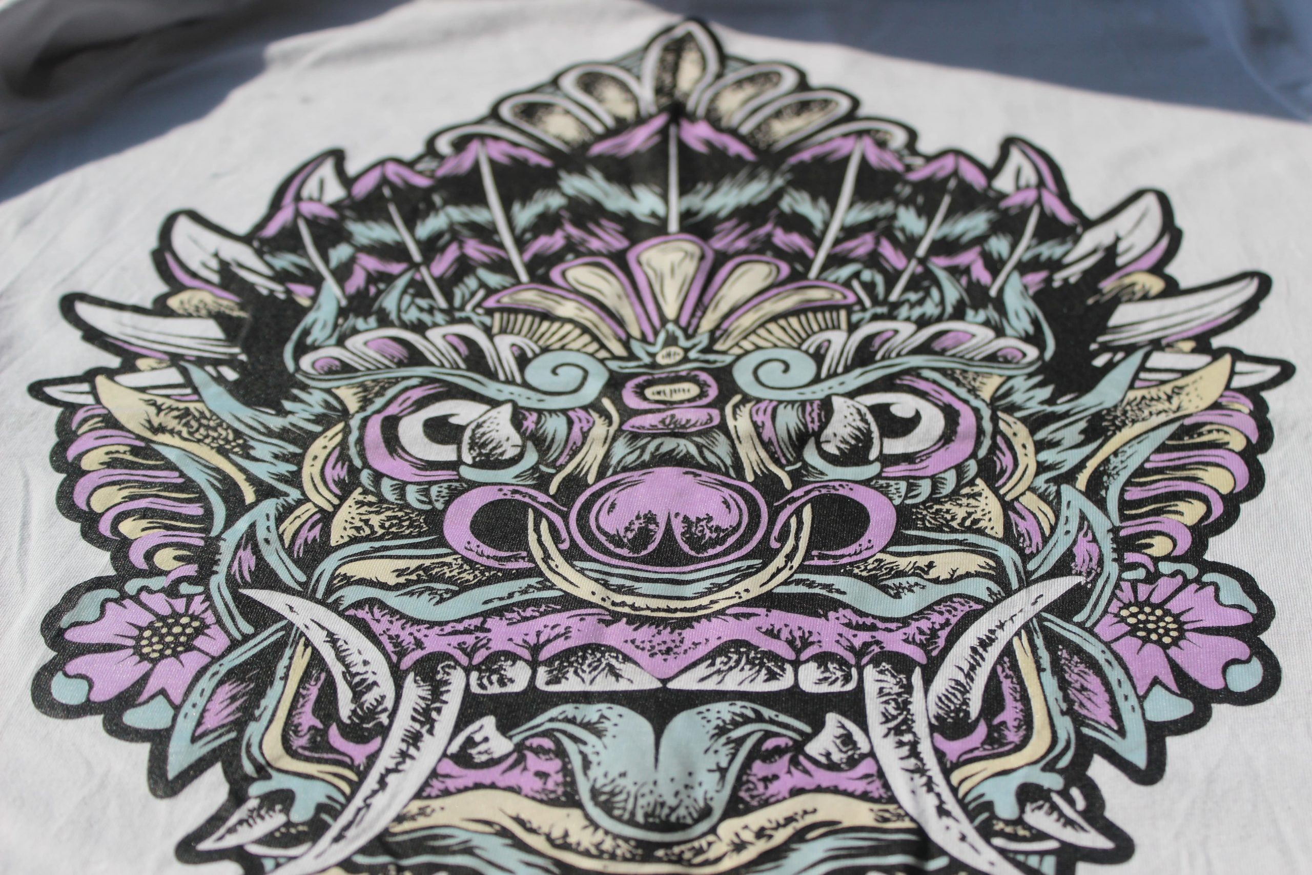 Нанесение? Нет, удаление. Суть этого спецэффекта в том, что мы вытравливаем краситель самого изделия. В итоге, рисунок совсем не ощутим на ткани. В вытравную основу можно добавить и цветные пигменты, и напечатать цветной вытравкой принт. Если вы хотите получить максимально мягкие отпечатки на цветном текстиле, мы рекомендуем сделать выбор в пользу печати вытравкой.