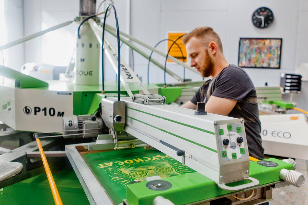 Во-первых, печать шелкографией износостойкая. Существует миф о том, что она трескается. Это значит, что клиент однажды столкнулся с некачественной печатью и теперь считает, что вся краска трескается, но это далеко не так. Печать на текстильных изделиях отличается от печати по гладкой бумаге, ведь ткань обладает текстурой и эластичностью. Шелкография на ткани деформируется также как ткань, она подвержена растяжению, но не осыпается, что не считается браком.