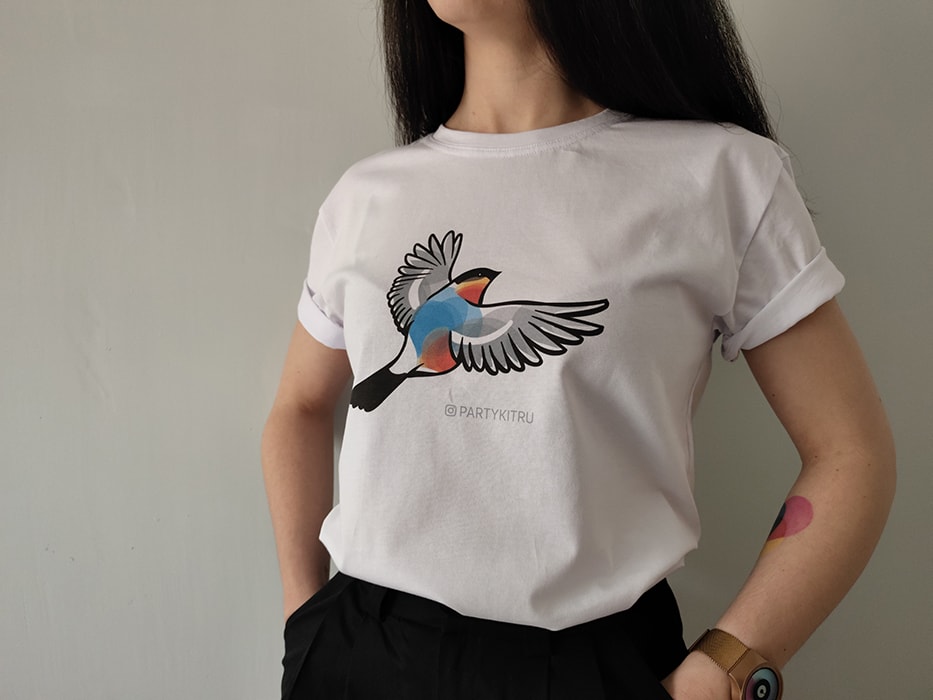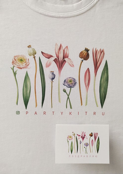 Меня зовут Оксана, я художник-иллюстратор проекта Party Kit. Для нас важно делать собственные иллюстрации для своих декораций, открыток, а печать на футболках помогает нам дополнить наши киты ещё и текстилем, это позволяет нам расширить сферу услуг.