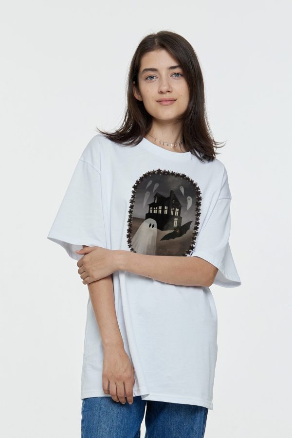 Футболка базовая Хэллоуин «Ghost house with pumpkin»