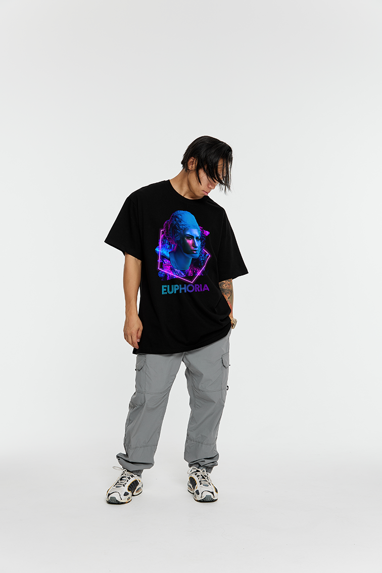 Футболка оверсайз из кулирной глади. Фасон унисекс. Состав: 100% хлопок. Плотность: 230 г/м2. Свободный актуальный крой, заниженная линия плеч. Круглый воротник на резинке, шов ворота закрыт киперной лентой. Необходимая вещь в гардеробе для повседневного образа.