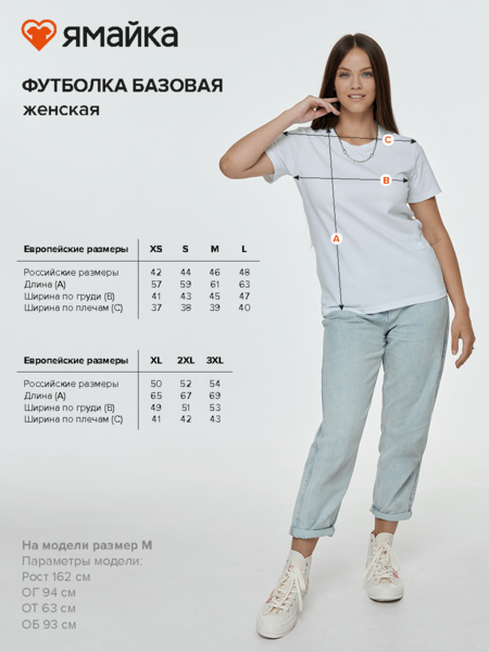 Футболка женская базовая с лайкрой из кулирной глади: в составе 95% хлопка и 5% лайкры. Плотность 165 г/м2. Прилегающий силуэт, короткий рукав и круглый воротник. Низ футболки и низ рукава обработаны швом в подгибку шириной в 2см. Горловина спинки обработана бейкой. Эластичность полотна улучшает посадку изделия на женской фигуре. Благодаря добавлению лайкры, изделие не деформируется после многочисленных стирок.