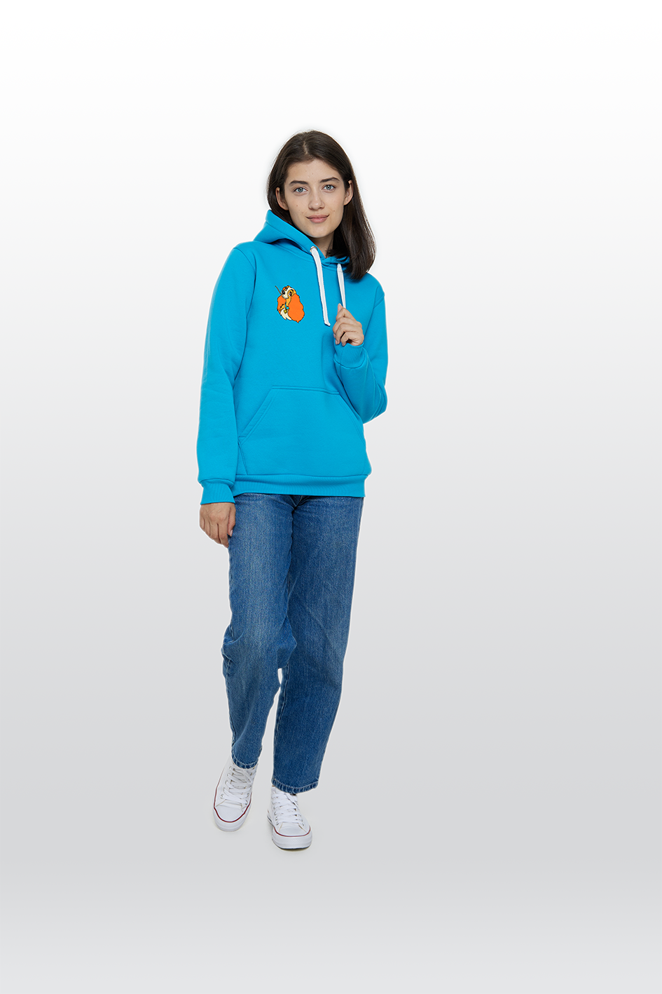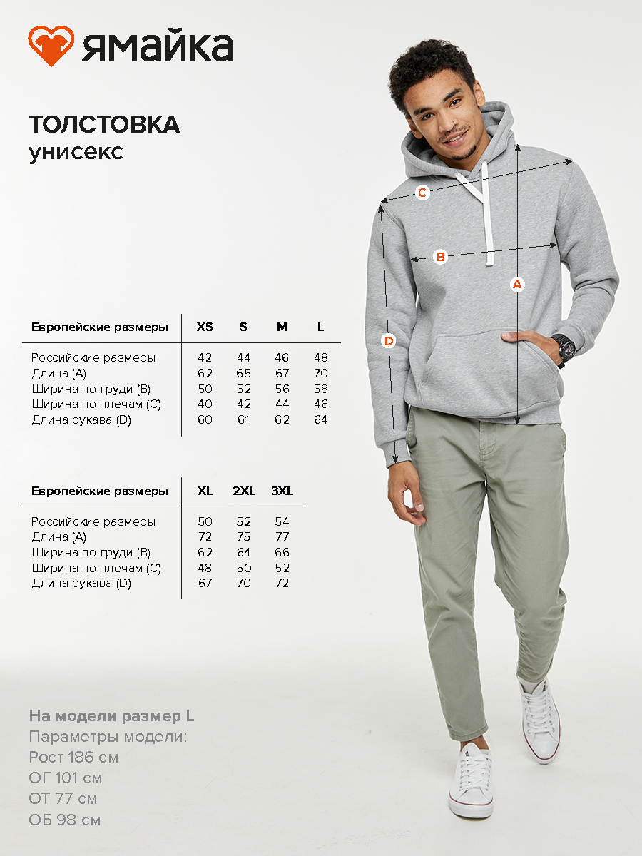 Толстовка из футера трёхнитки с начёсом: 80% хлопок и 20% полиэстер. Плотность 350 г/м2. Прямой силуэт, капюшон, втачной рукав. Низ толстовки и манжеты рукавов обработаны эластичной резинкой. Посадка капюшона регулируется с помощью шнурка, продетого в люверсы. Накладной карман кенгуру придает толстовке оригинальность и практичность. Толстовка унисекс, фасон подойдет мужчинам и женщинам.