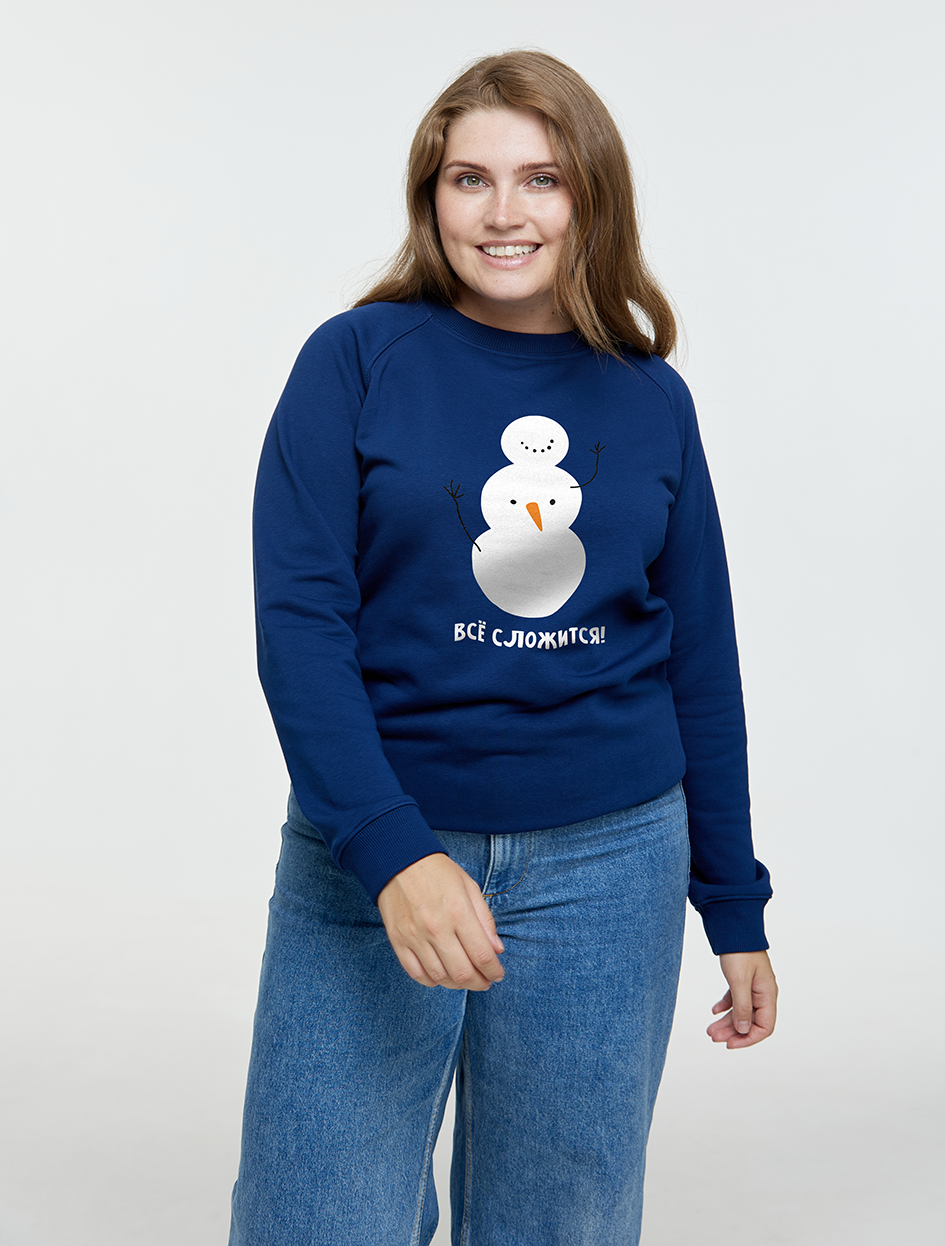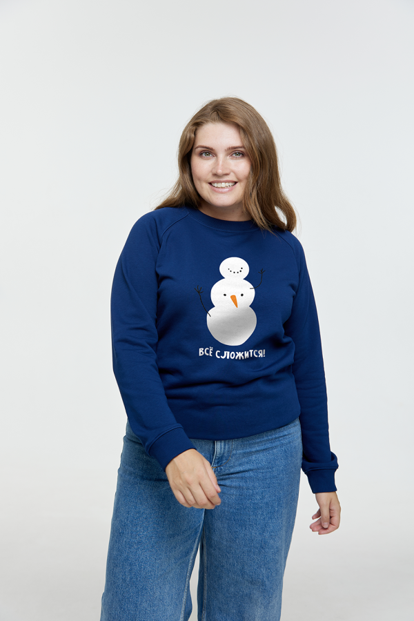 Свитшот из футера трёхнитки без начёса: 70% хлопок и 30% полиэстер. Плотность 350 г/м2. Прямой силуэт, пояс и манжеты рукавов выполнены из эластичной резинки. Круглая горловина обработана киперной лентой для защиты от растяжения. Особенность модели – рукав реглан. Рукав выкраивается вместе с плечевой частью изделия и пришивается к горловине. Конструкция со смещенным плечевым швом обеспечивает удобную посадку и не сковывает движений. Крой свитшота – унисекс, подходит как мужчинам, так и женщинам.