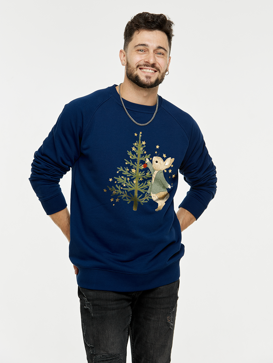 Свитшот из футера трёхнитки без начёса: 70% хлопок и 30% полиэстер. Плотность 350 г/м2. Прямой силуэт, пояс и манжеты рукавов выполнены из эластичной резинки. Круглая горловина обработана киперной лентой для защиты от растяжения. Особенность модели – рукав реглан. Рукав выкраивается вместе с плечевой частью изделия и пришивается к горловине. Конструкция со смещенным плечевым швом обеспечивает удобную посадку и не сковывает движений. Крой свитшота – унисекс, подходит как мужчинам, так и женщинам.