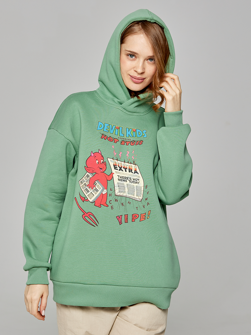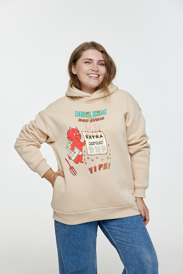 Толстовка оверсайз с боковыми карманами из футера трёхнитки с начёсом: 350 г/м2, 80% хлопок и 20% полиэстер. Удлиненный фасон, свободный актуальный крой. Спущенная линия плеча, втачной рукав, объёмный капюшон. Края капюшона сшиты внахлест. Низ толстовки и манжеты рукавов обработаны эластичной резинкой. Худи унисекс, фасон подойдет мужчинам и женщинам.