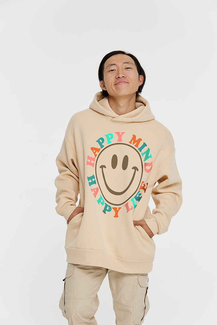 Толстовки оверсайз с принтом «Happy mind happy life»
