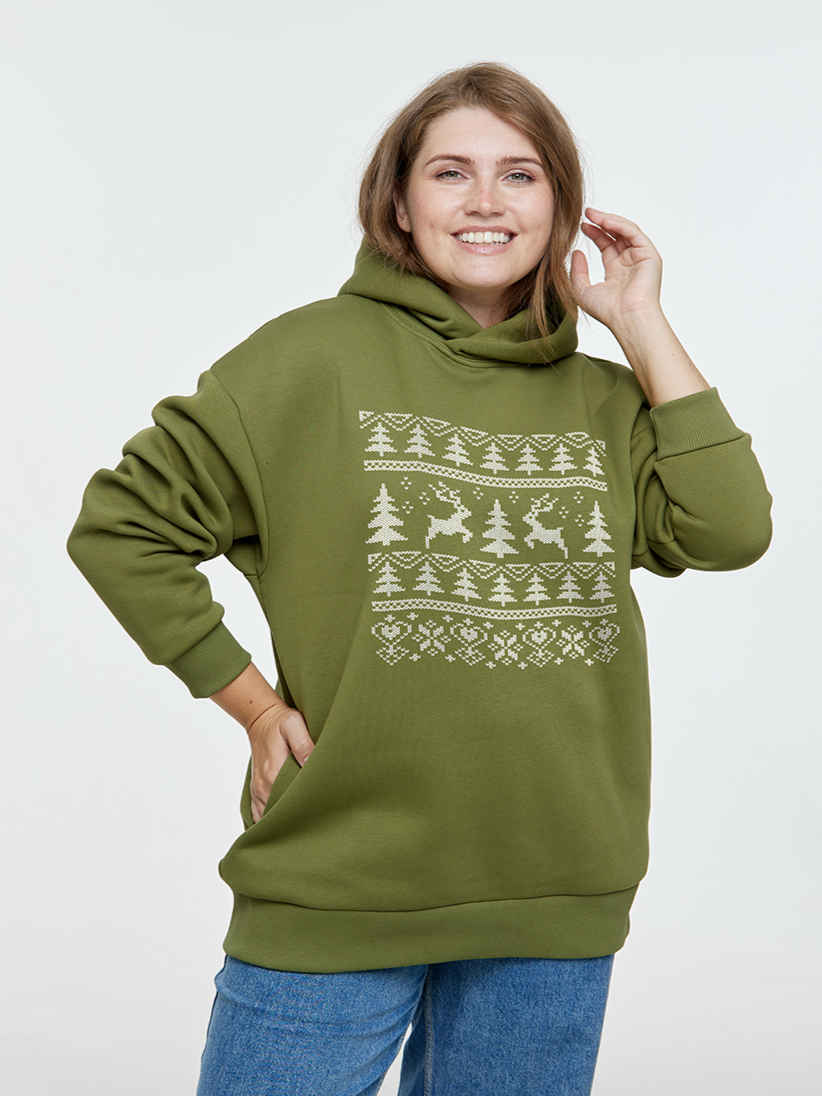 Окутайте себя волшебством праздника в толстовке оверсайз ‘Олений орнамент’. Принт в виде белого орнамента, вдохновленного народными рождественскими узорами, добавит вашему образу уюта и тепла. Эта толстовка сочетает в себе дух народной традиции и стильный, современный дизайн. Орнамент, как на вязаных рождественских свитерах, добавит в ваш образ нотку ретро-шарма и создаст атмосферу уюта.