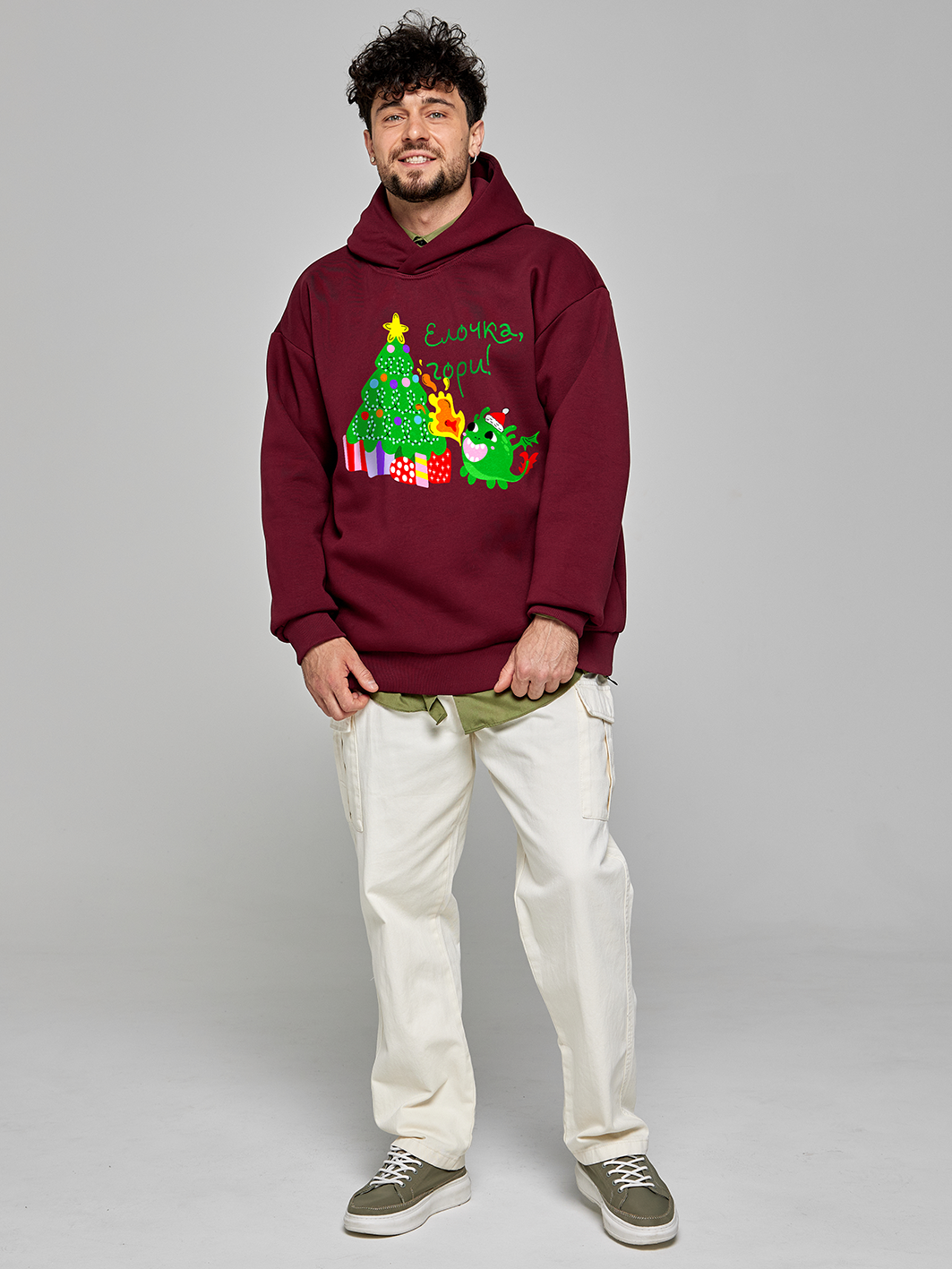 Ощутите искру волшебства в толстовке оверсайз ‘Ёлочка, гори!’ — оригинальным и веселым акцентом для вашего новогоднего стиля. Принт с изображением милого маленького дракона-поджигателя добавит в ваш образ юмор и игривость. Эта толстовка — не просто одежда, а история о встрече с символом года — веселым дракончиком, готовым зажечь ваш праздничный вечер.