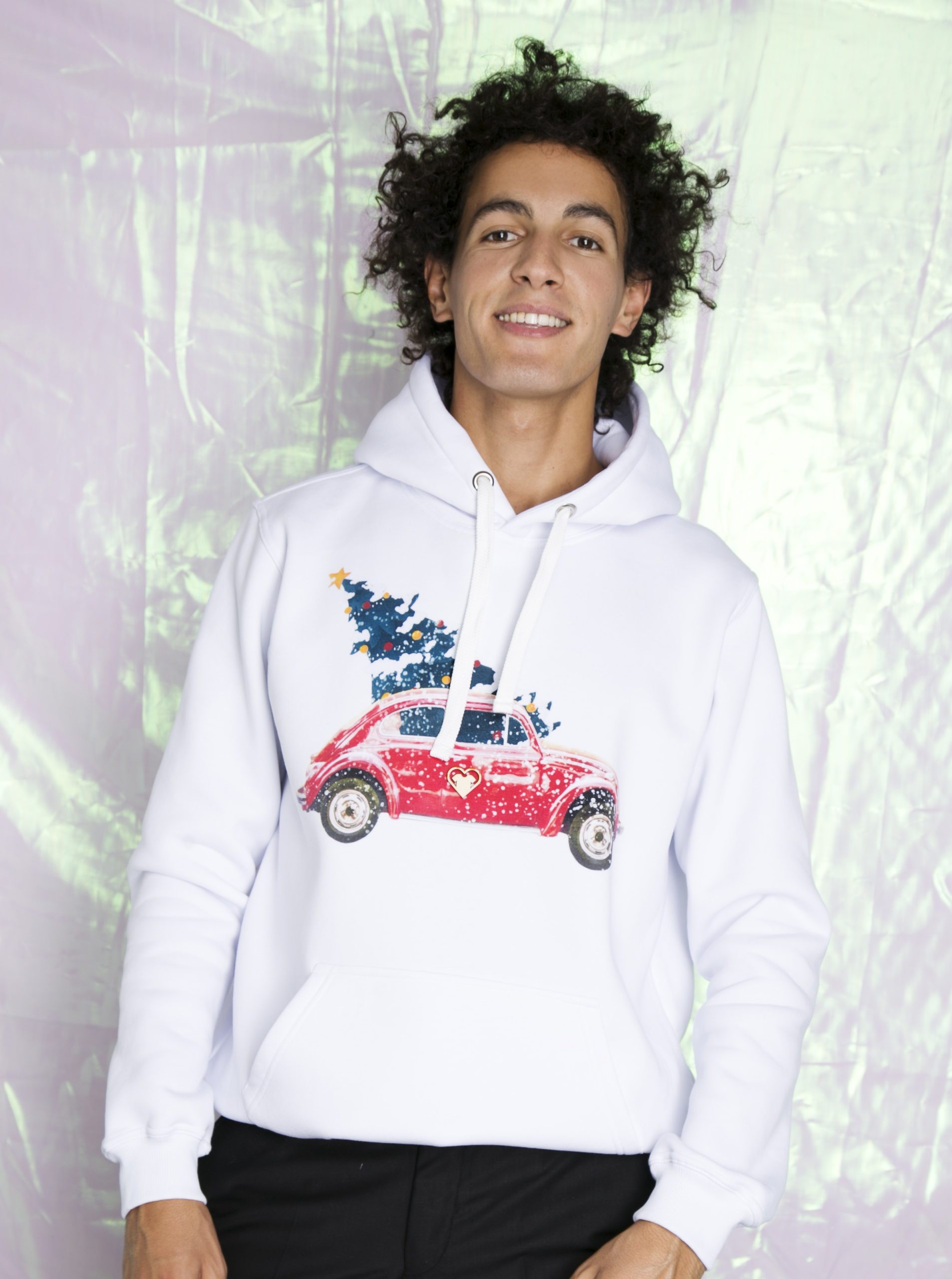 Ощутите волшебство новогодних моментов в нашей толстовке с принтом «Новогодняя машина». «Красный жук», который везет с собой радость и праздничное настроение, украсит ваш образ яркими красками!