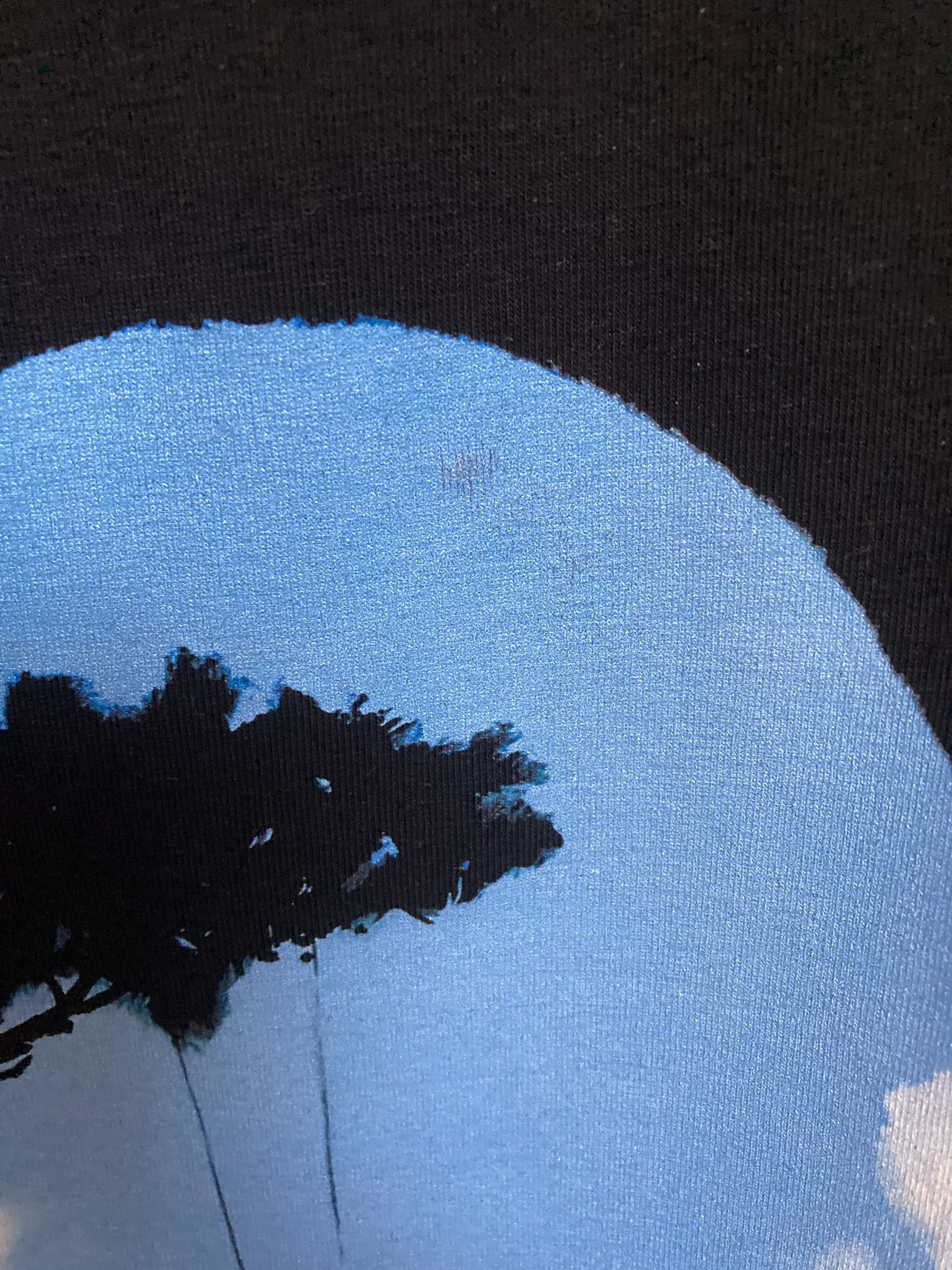 При печати на цветных изделиях используется специальный грунт для лучшего закрепления принта на ткани. Иногда от грунта остаются следы. Они легко уходят после первой стирки.