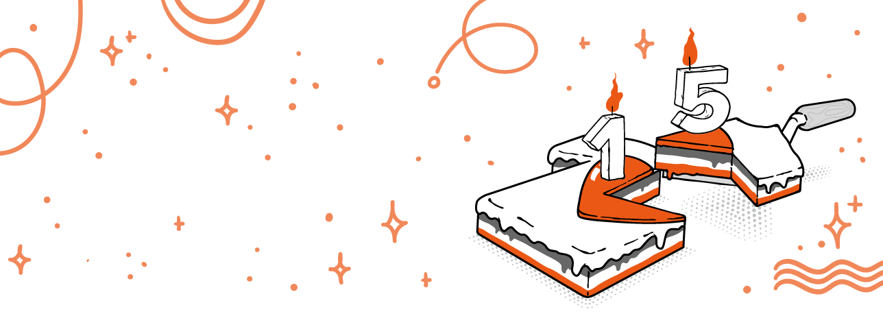 В 2023 году наша компания отмечает 15-летие! Получать подарки весело, но дарить их ещё круче! По этому случаю мы решили выдать всем и каждому повышенный кэшбек. Но только 15-го числа каждого месяца!