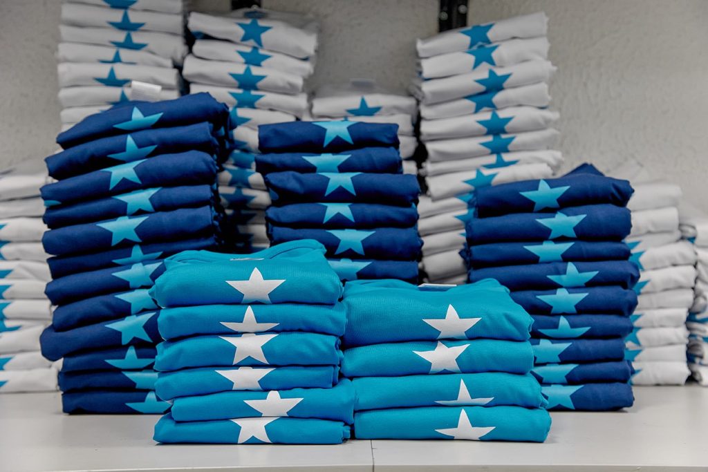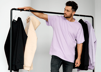 Собственное швейное производство и склад с футболками, толстовками и свитшотами разных цветов в наличии. А также возможность индивидуального пошива под крупные заказы. Мы сами подбираем полотно, кроим и шьем наши изделия. У нас можно заказать футболки с корректировкой лекала и с цветом, который не представлен в ассортименте.