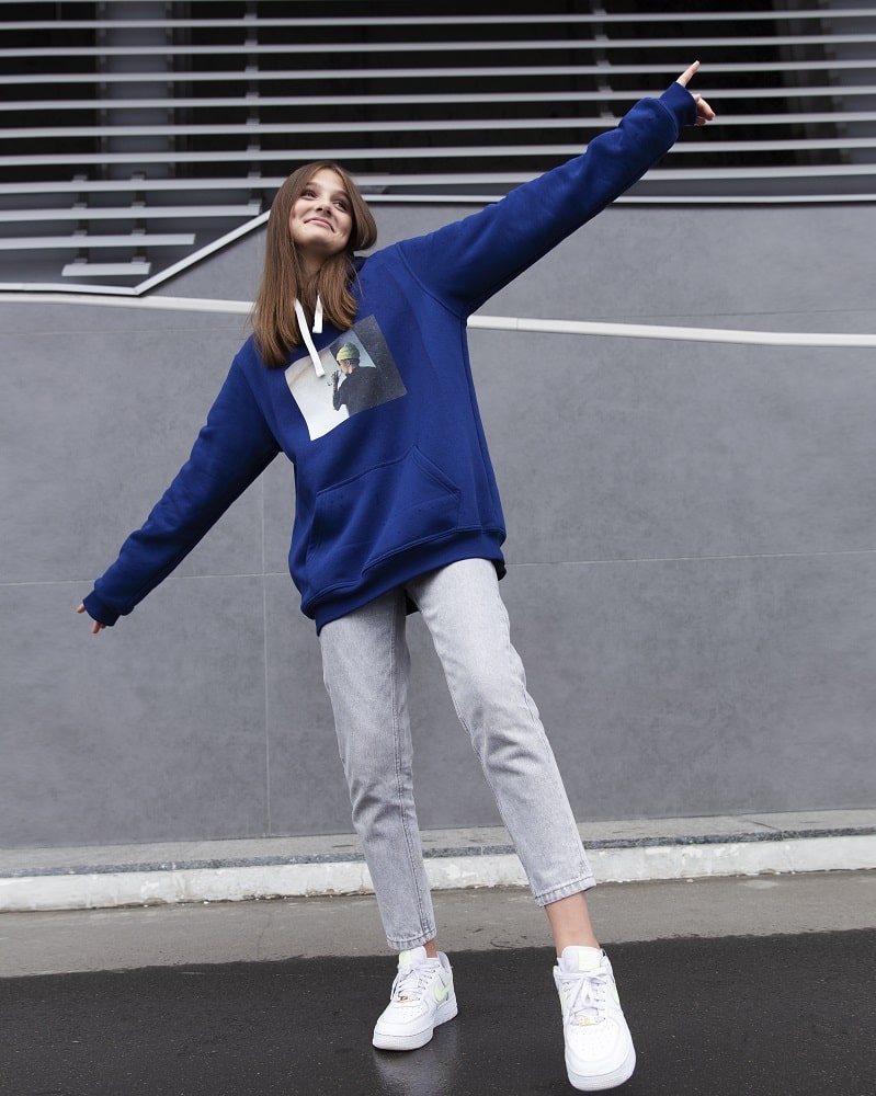 Для пошива худи мы используем ткани на основе натурального хлопка с добавлением полиэстера. Смесовые волокна хорошо впитывают и удерживают краску. Пигмент не вымывается во время стирки, проявляет устойчивость к выгоранию. Даже после долгой носки принт будет выглядеть как новый. Мы даем гарантию на 30 стирок! Кроме того, любое изображение можно дополнить спецэффектами: имитацией кожи, фольгой, глиттерным лаком, флюором и другими.