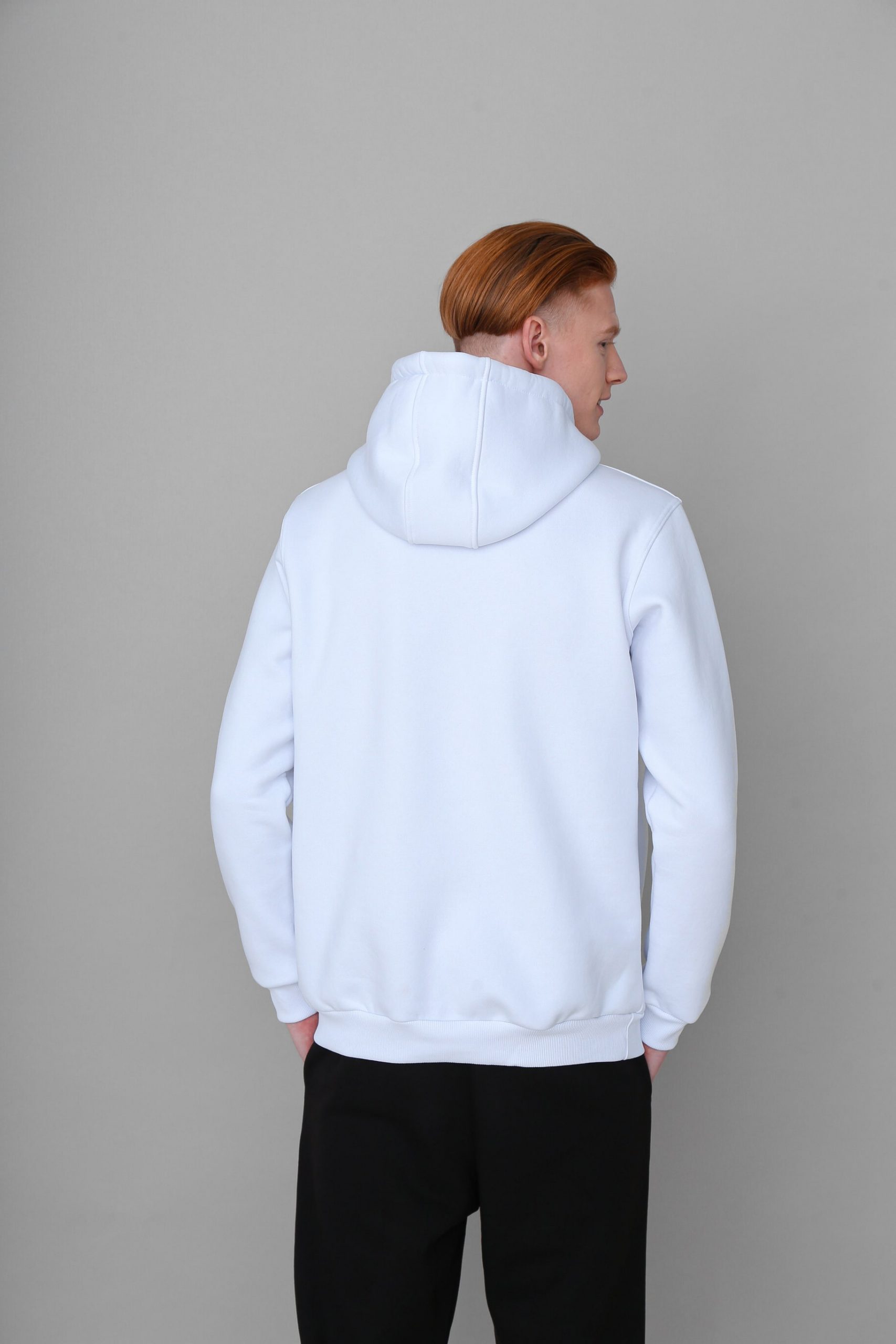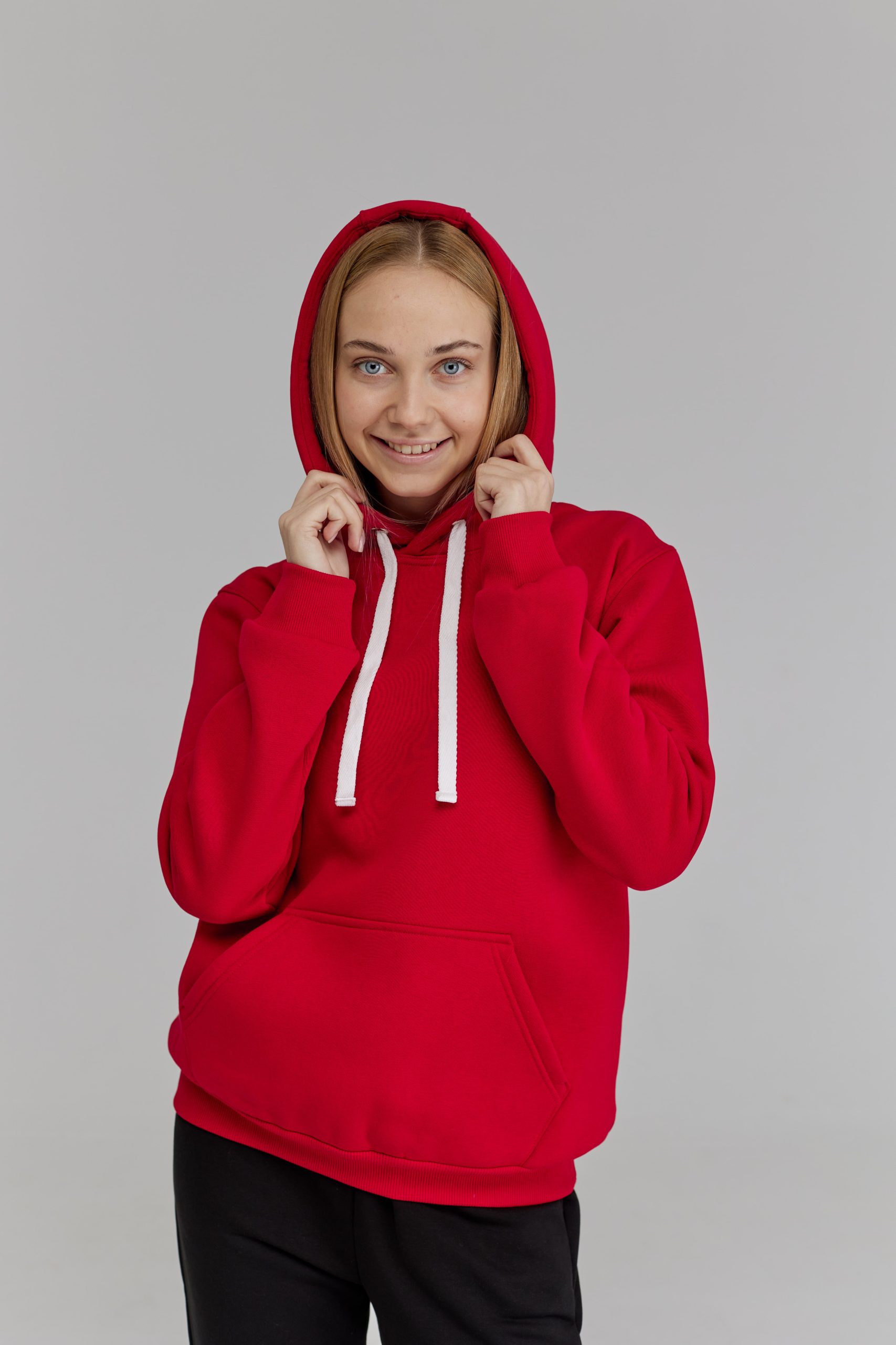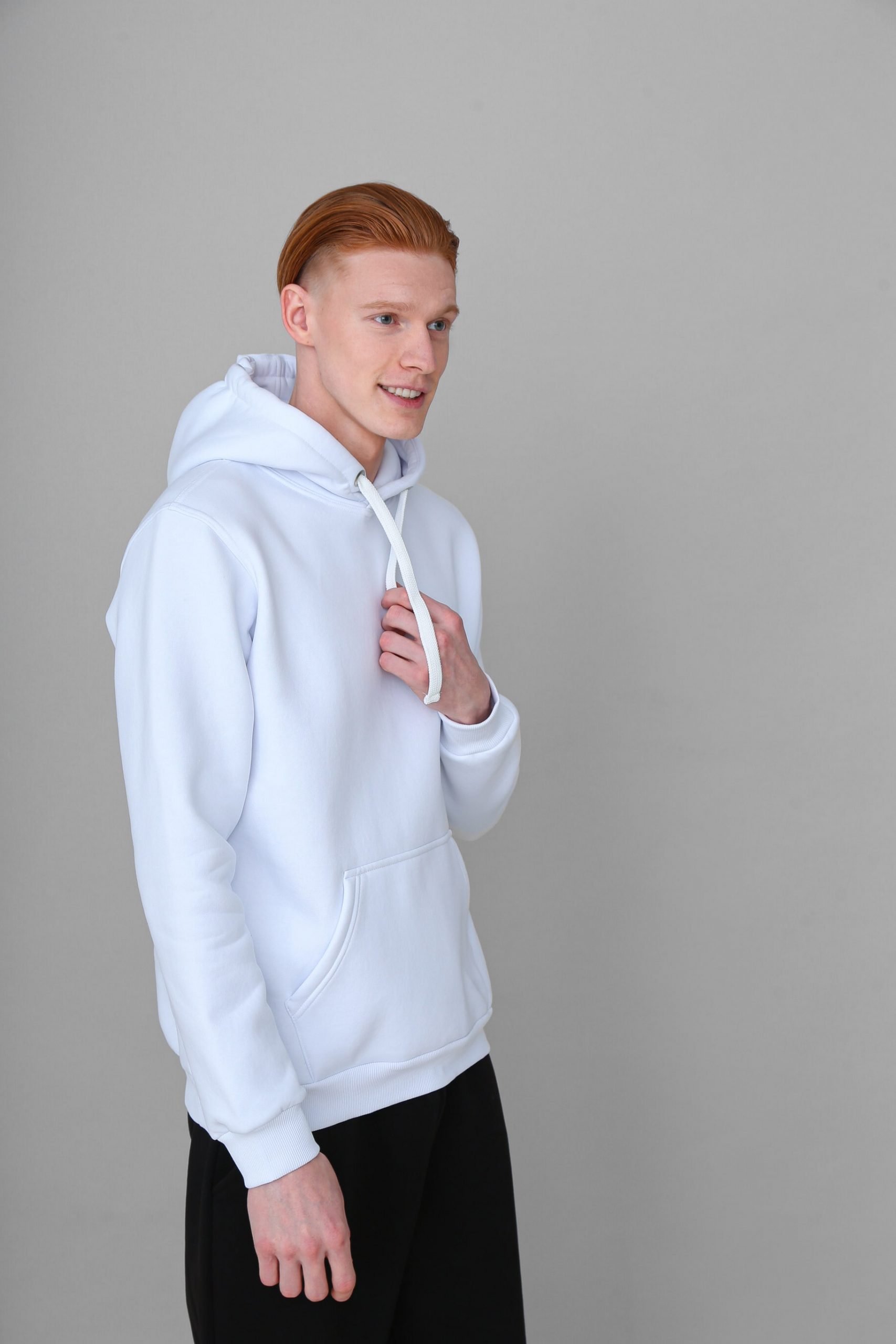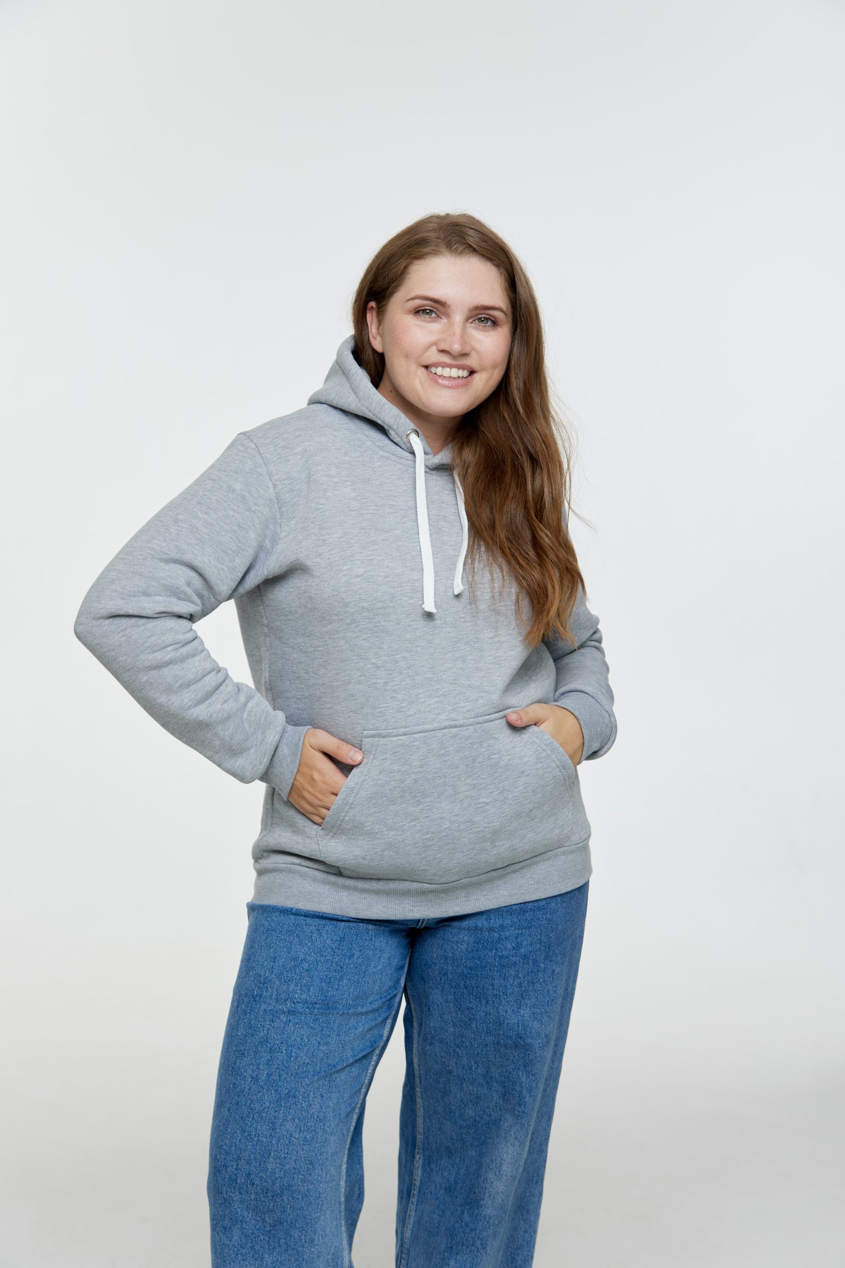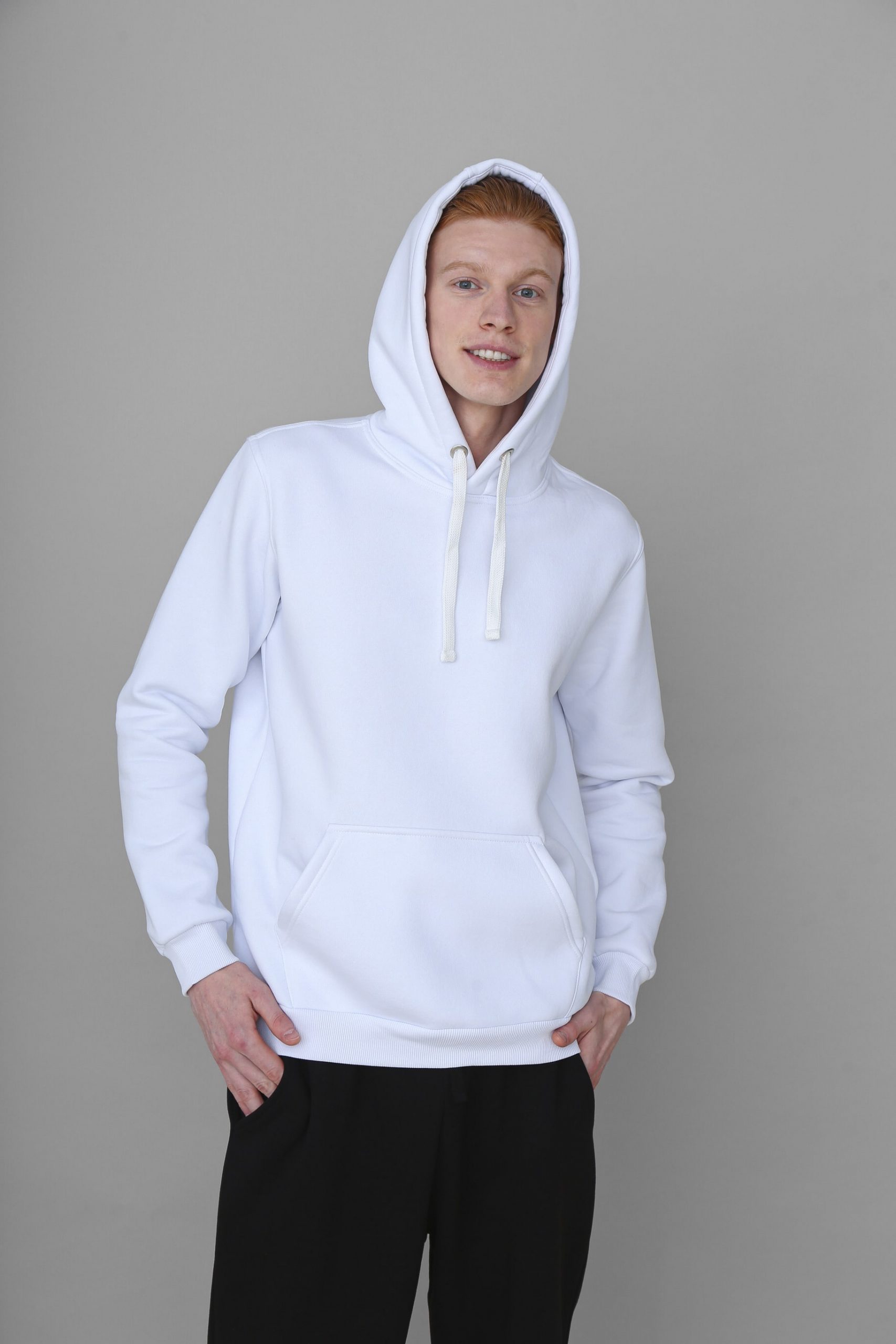 Толстовка из футера трёхнитки с начёсом: 80% хлопок и 20% полиэстер. Плотность 350 г/м2. Прямой силуэт, капюшон, втачной рукав. Низ толстовки и манжеты рукавов обработаны эластичной резинкой. Посадка капюшона регулируется с помощью шнурка, продетого в люверсы. Накладной карман кенгуру придает толстовке оригинальность и практичность. Толстовка унисекс, фасон подойдет мужчинам и женщинам.