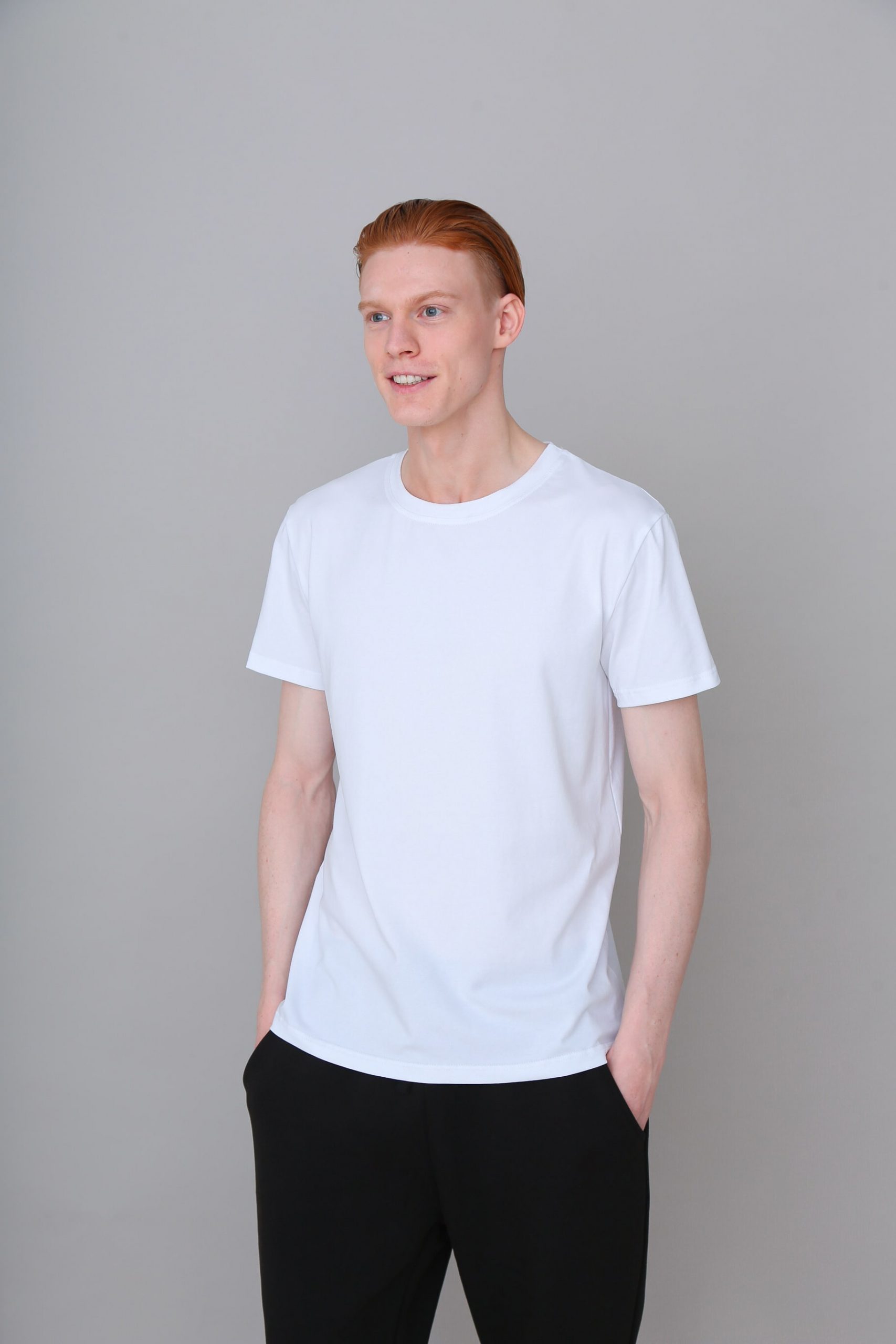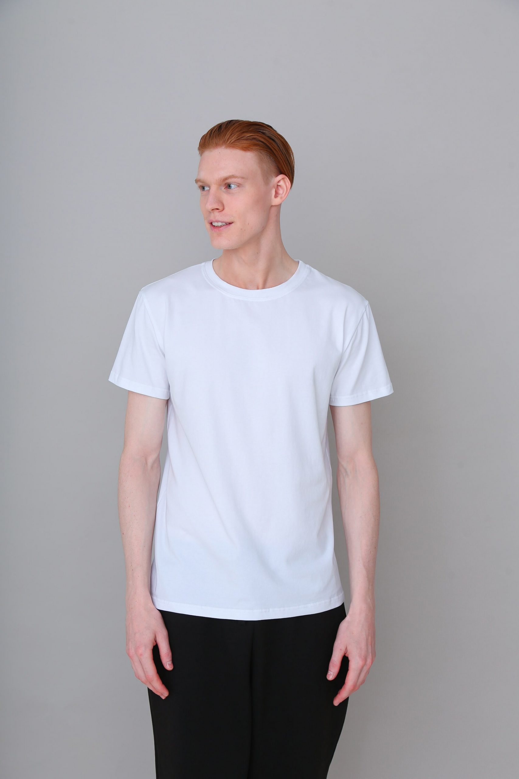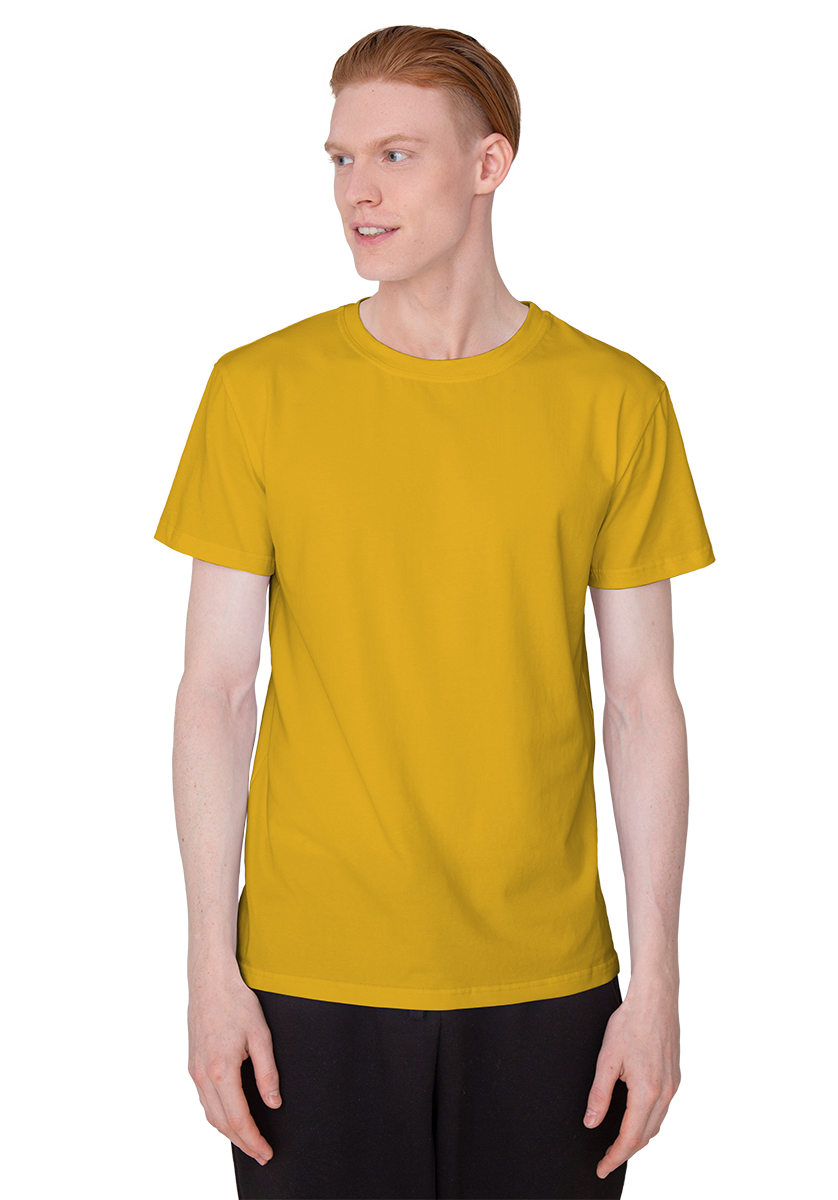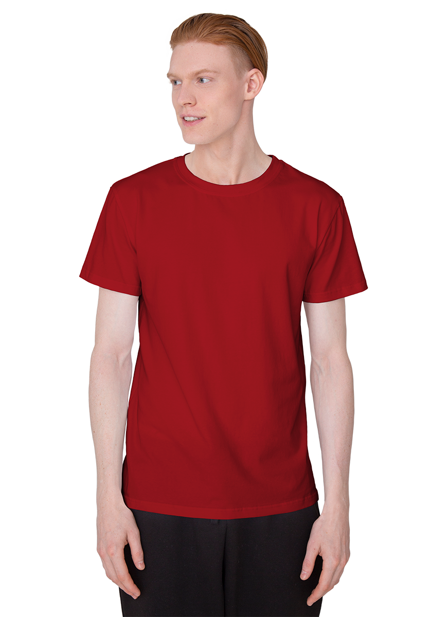 Футболка мужская из кулирной глади, 100% хлопок. Плотность 180г/м2. Прямой традиционный силуэт, короткий рукав и круглый воротник. Низ футболки и низ рукава обработаны швом в подгибку шириной в 2см. Крой обеспечивает комфорт и практичность.