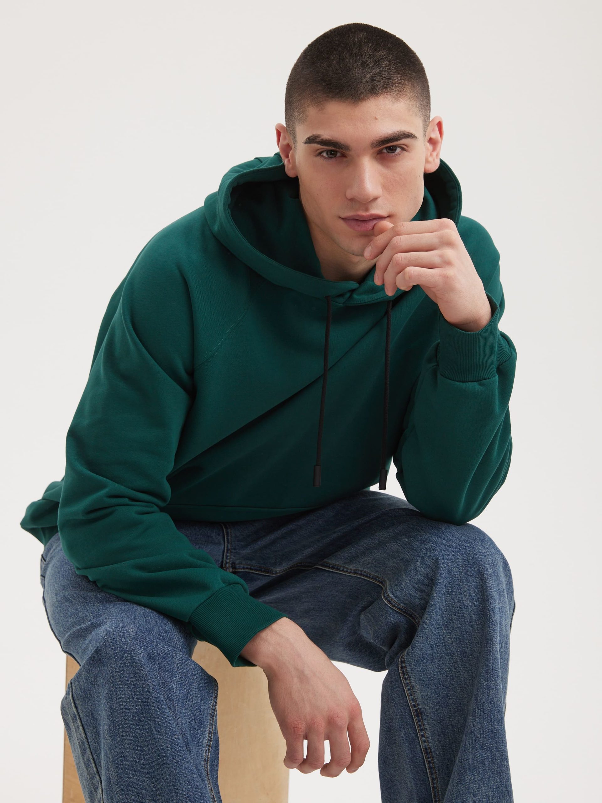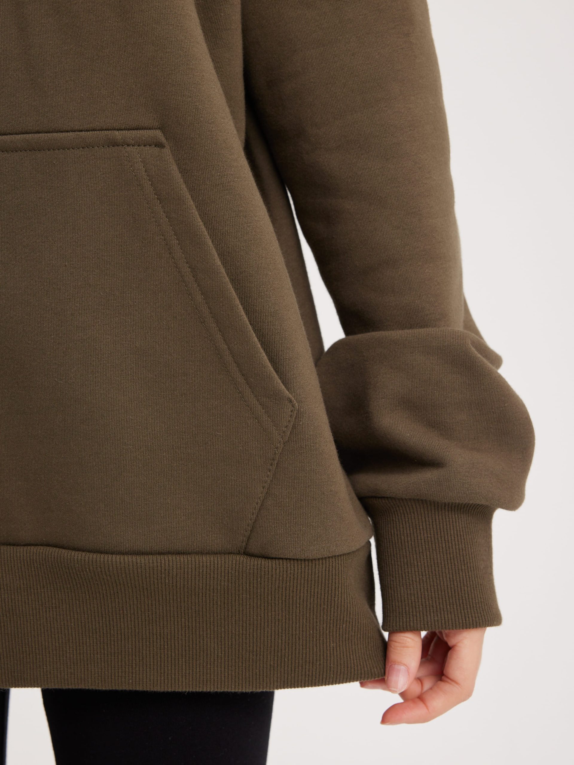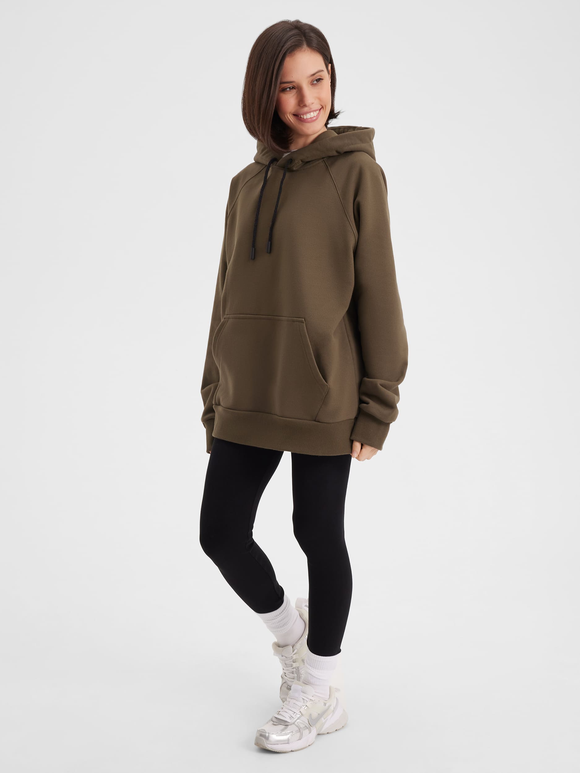 Толстовка оверсайз с боковыми карманами из футера трёхнитки с начёсом: 350 г/м2, 80% хлопок и 20% полиэстер. Удлиненный фасон, свободный актуальный крой. Спущенная линия плеча, втачной рукав, объёмный капюшон. Края капюшона сшиты внахлест. Низ толстовки и манжеты рукавов обработаны эластичной резинкой. Худи унисекс, фасон подойдет мужчинам и женщинам.