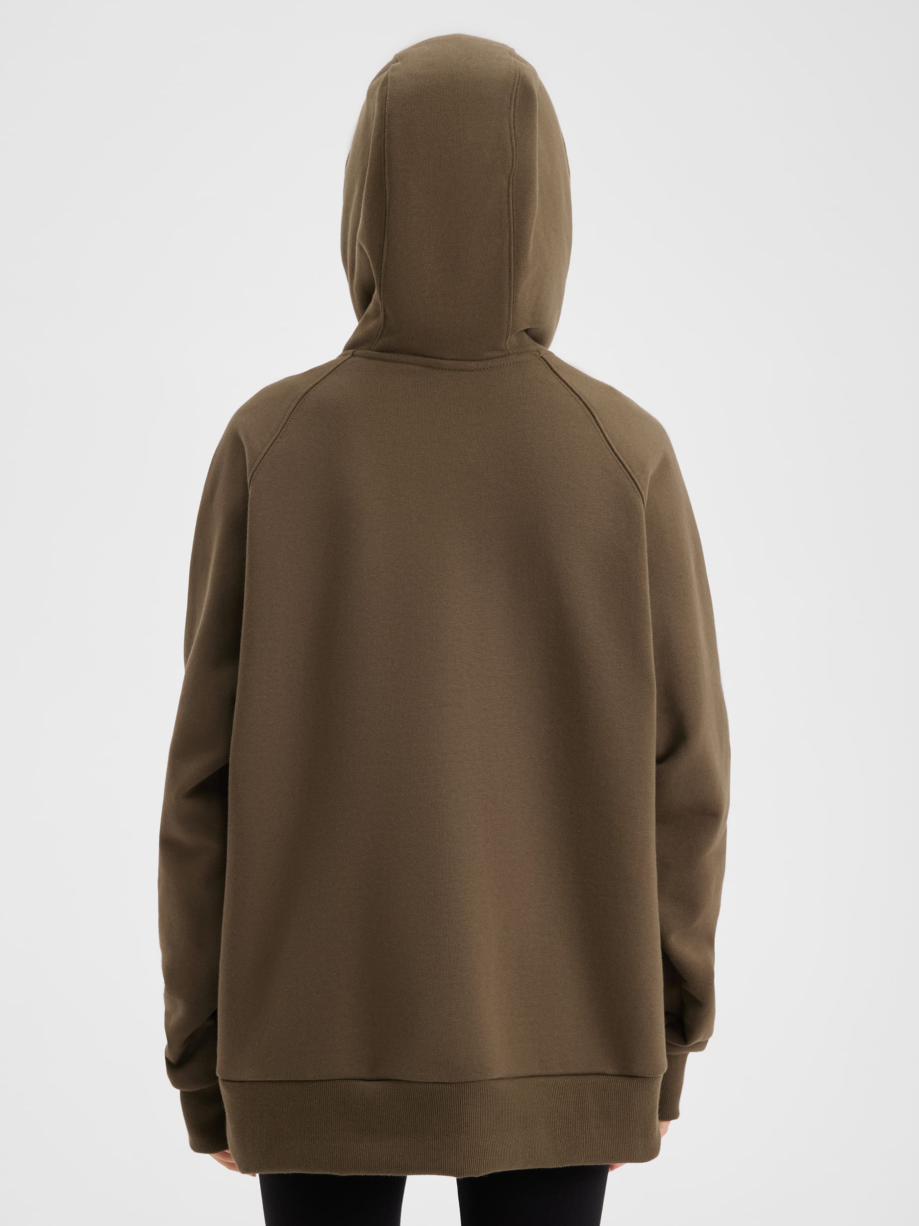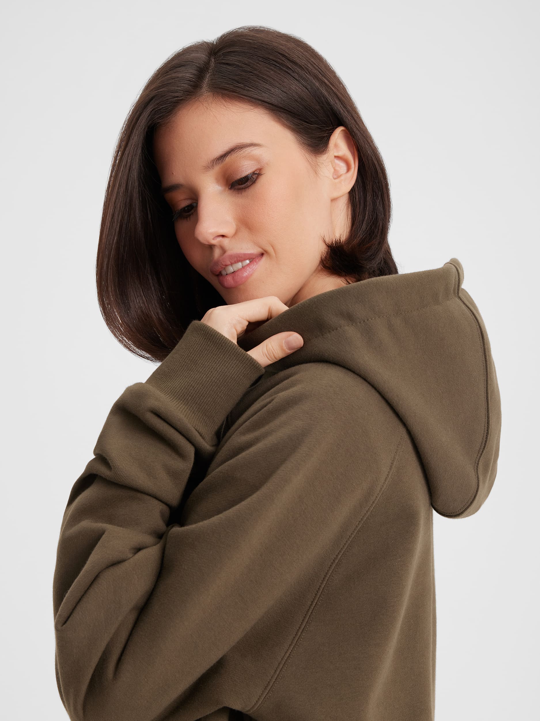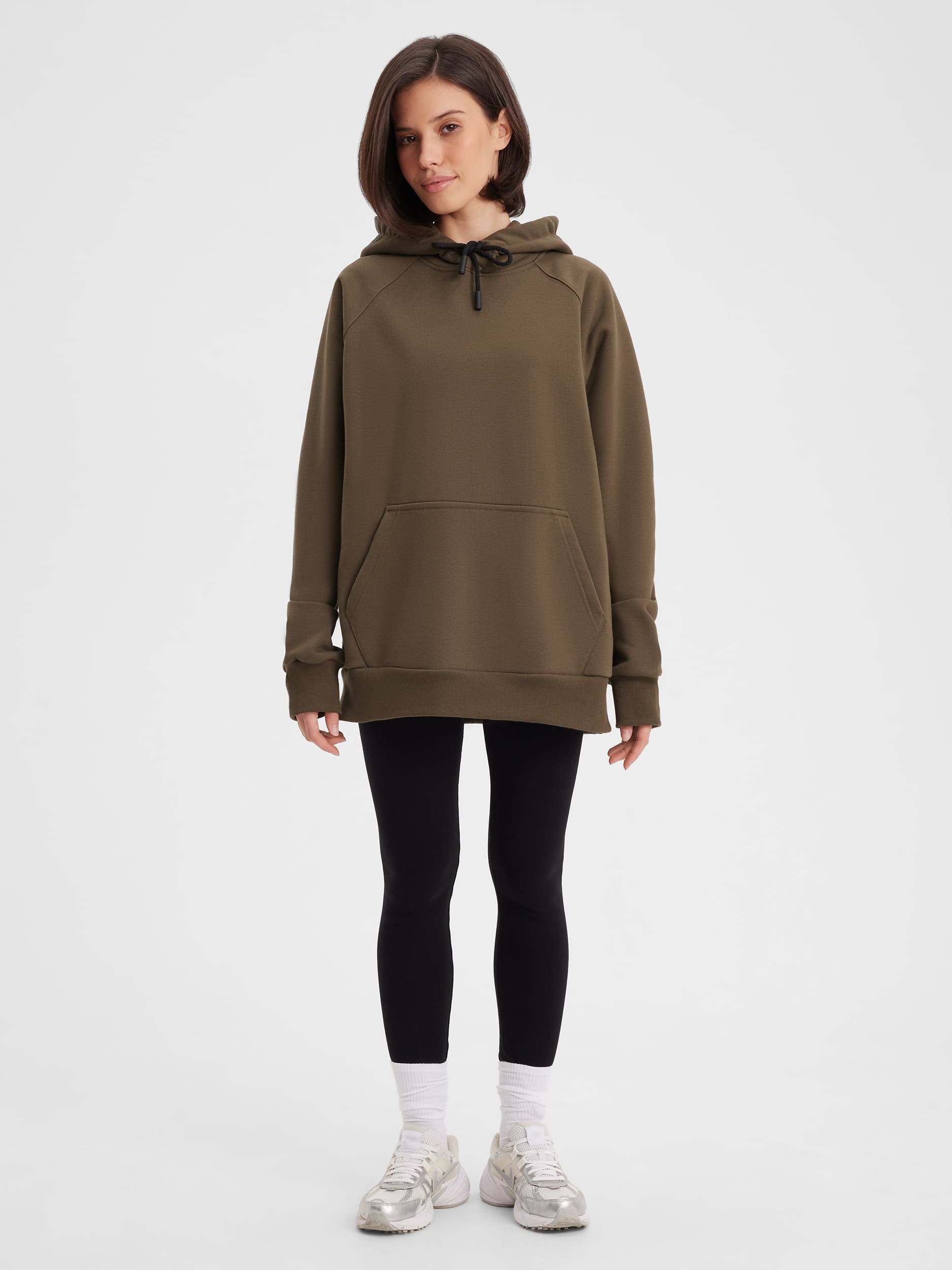 Толстовка оверсайз с боковыми карманами из футера трёхнитки с начёсом: 350 г/м2, 80% хлопок и 20% полиэстер. Удлиненный фасон, свободный актуальный крой. Спущенная линия плеча, втачной рукав, объёмный капюшон. Края капюшона сшиты внахлест. Низ толстовки и манжеты рукавов обработаны эластичной резинкой. Худи унисекс, фасон подойдет мужчинам и женщинам.