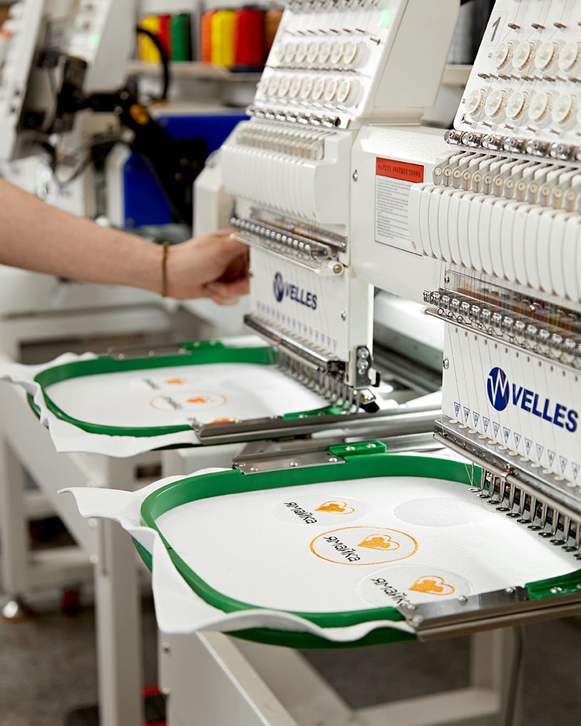 Мы оборудовали собственный вышивальный цех, благодаря чему можем максимально оперативно производить образцы для согласования будущего тиража, а также в самые короткие сроки производить сами тиражи. А кроме того, осуществлять контроль качества на каждом этапе производства.